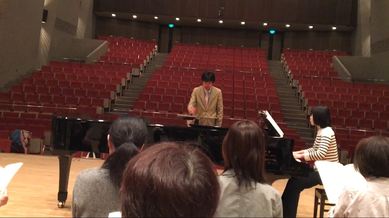 4/8(土)は集中練習、鳥取市文化ホールにてホール練習でした。鈴木先生のご指導により、どちりなきりしたんとHANAより《さくら(独唱)》を練習しました。