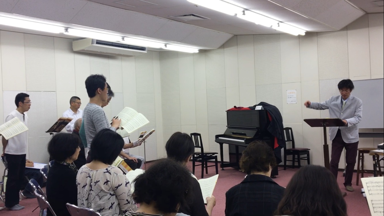 5/4(木・祝)は鈴木先生のご指導により、どちりなきりしたんⅢ・Ⅱ・Ⅴと後半は成瀬さんのご指導により《瑠璃色の地球》を練習しました。みどりの日のこの日、案の定集まりが悪いです。皆さん旅行ですかねいいですねー。
