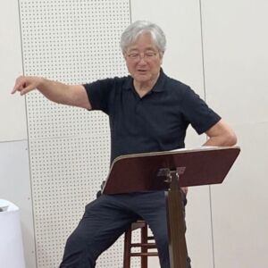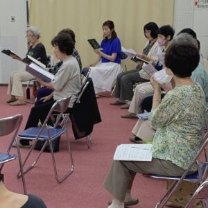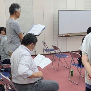 6/22 信長さんの編曲「君をのせて」を新倉先生、大広先生の伴奏で練習しました。竹田先生の時に一度、ステージで歌ったことがあったので、少し安心感。