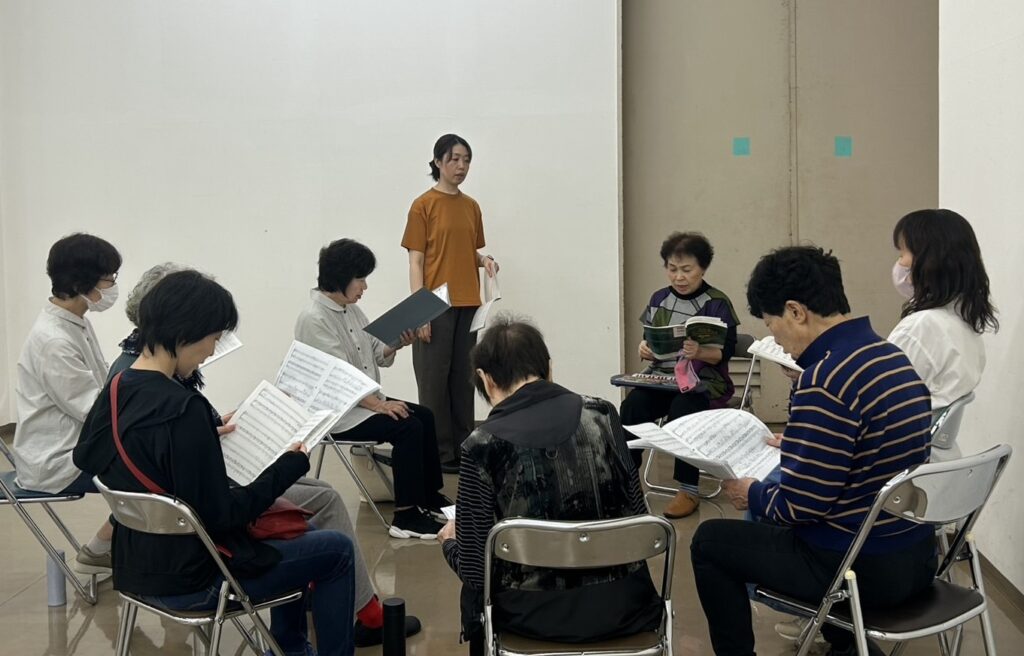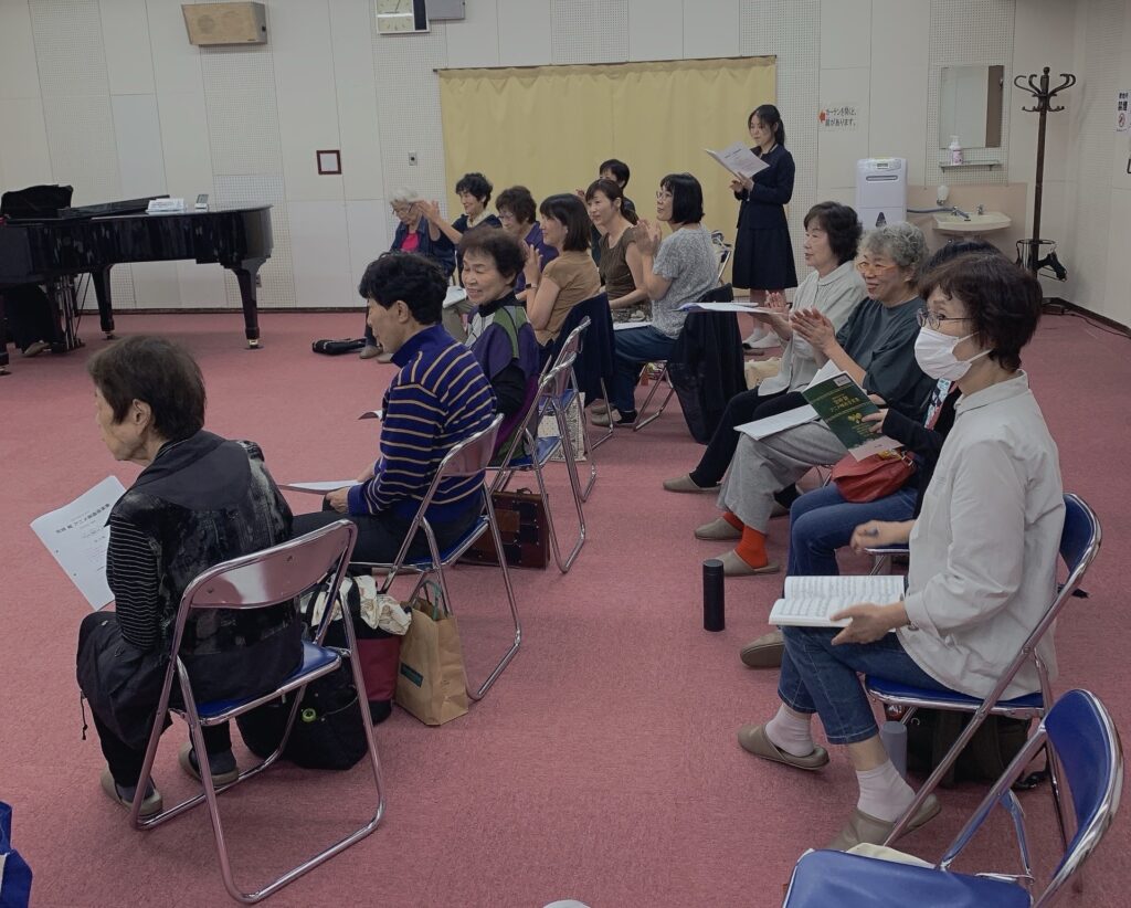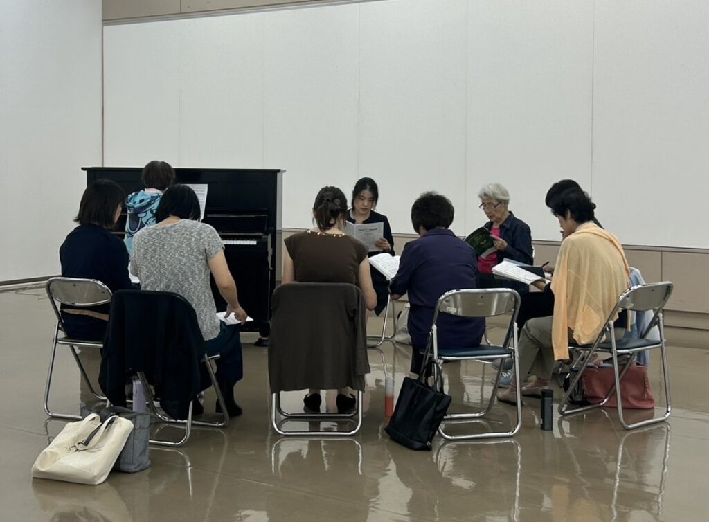 各パートに分かれて音取り。ソプラノ、アルト一緒に音取りしてましたが、別々に音取り。ソプラノさん、いつもとは違う音階で大変そうでしたね。ファイト。