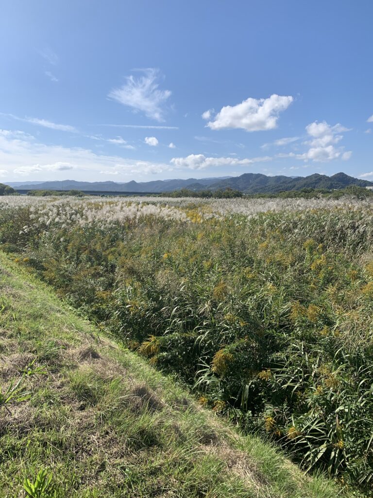こちらは、千代川沿い。背丈以上にススキが大きくてビックリでした。歩いてるそばから、バッタがたくさん飛び交ってました。