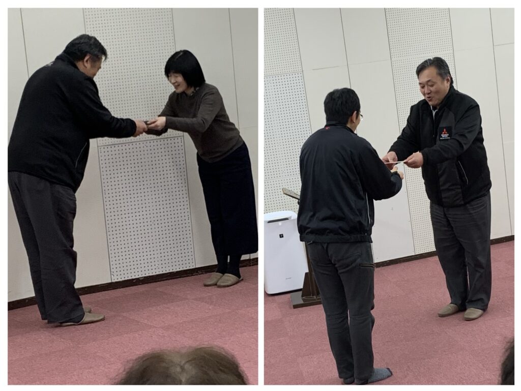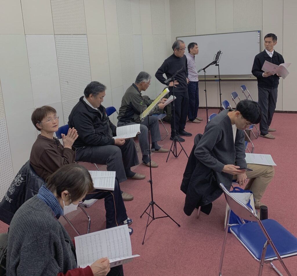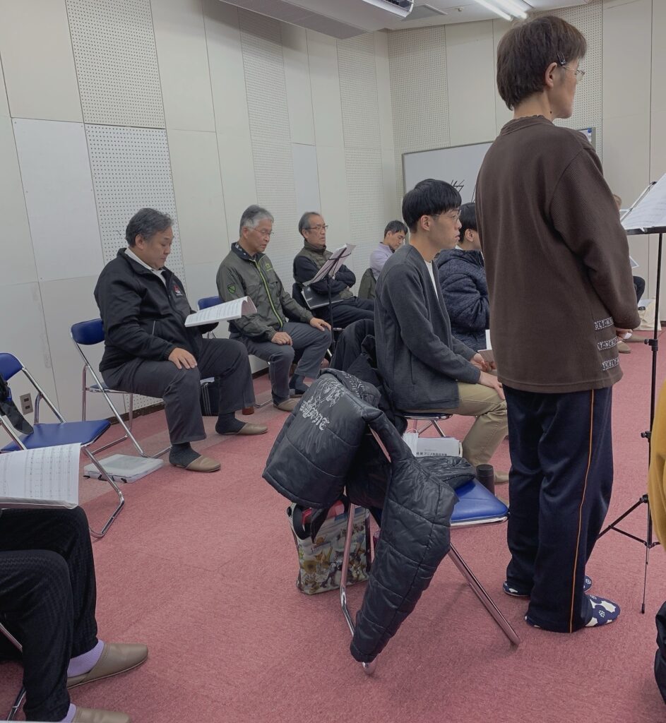 練習終わり、指揮者、ピアニストへの謝礼をお渡ししました。今年もお世話になります。ありがとうございます。そして久しぶりの団長登場。貫禄あるなぁ。