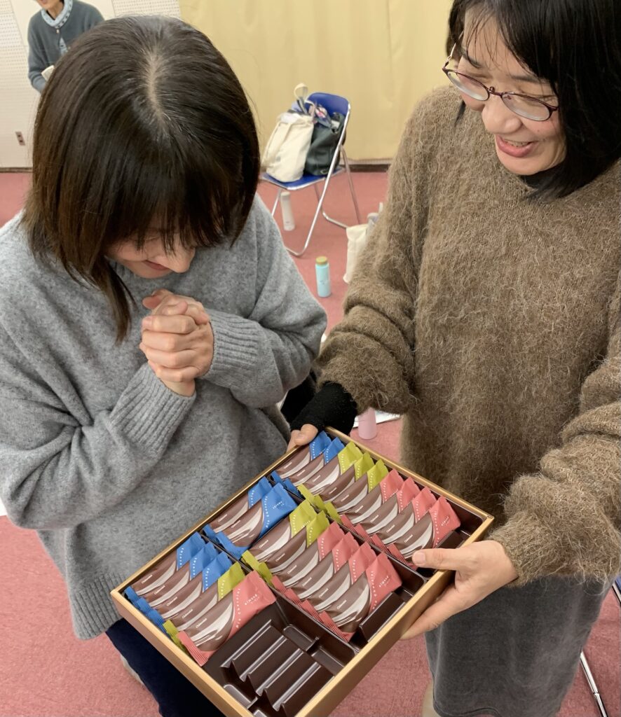 ソプラノTさんより、バレンタインデーが来るからと、お菓子の差し入れ。「うわぁ、どれにしよう」声が聞こえてきそう。Tさん、ありがとうございました。